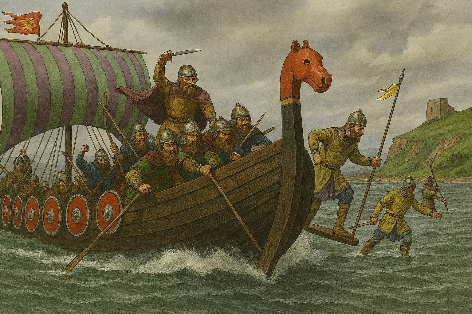 Vikingerne indtog Normandiet i 911 (Illustration: Storkene.dk)