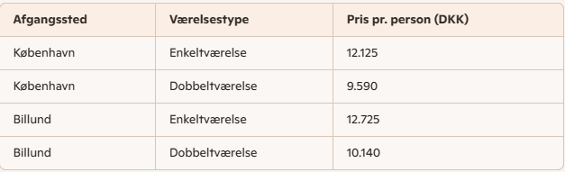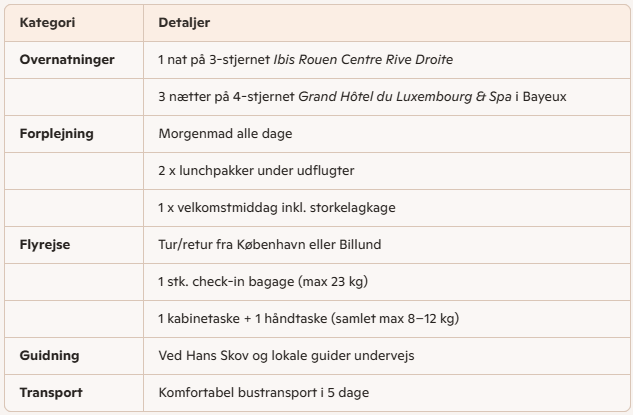 Rejsens pris inkluderer:
